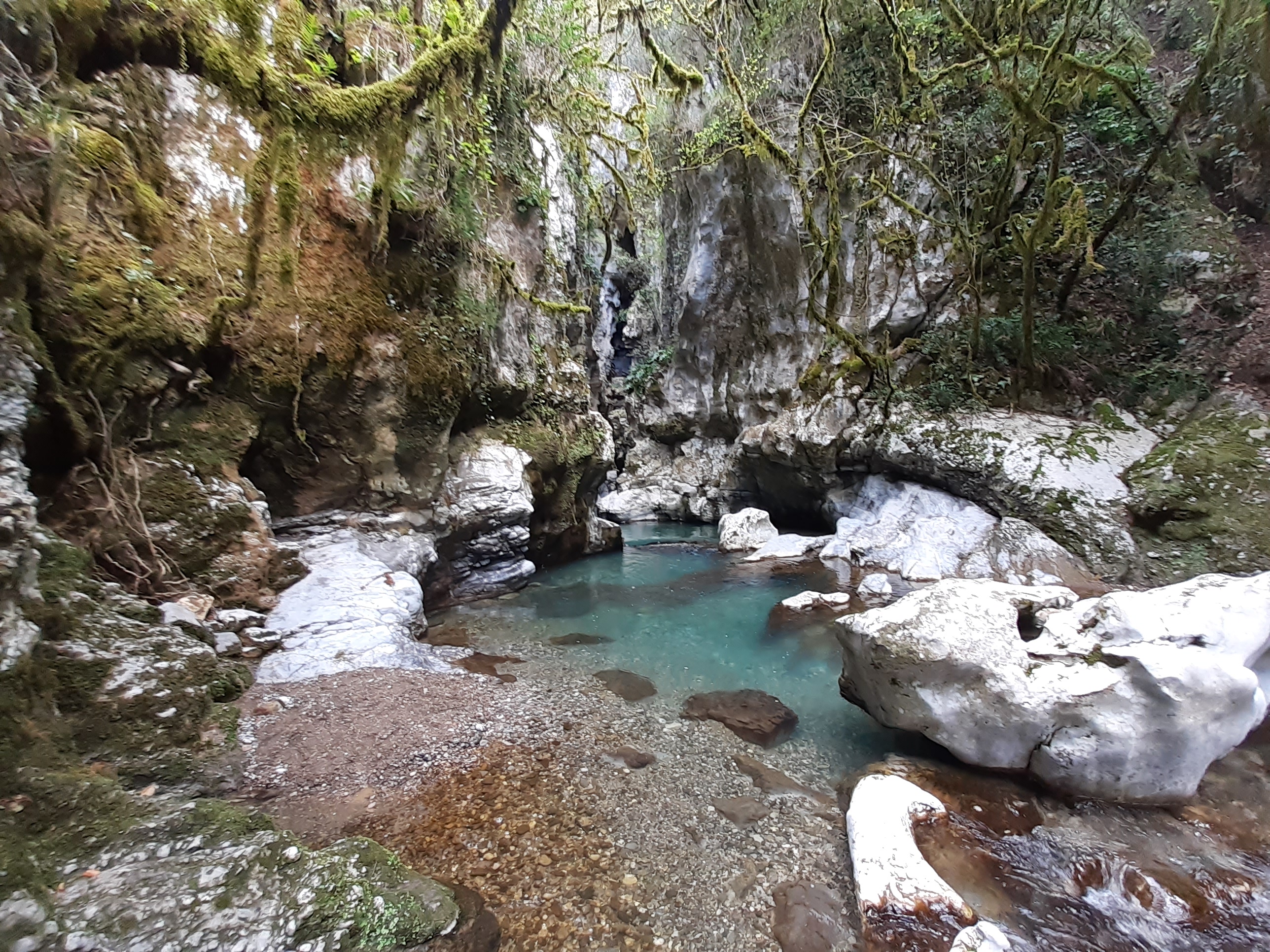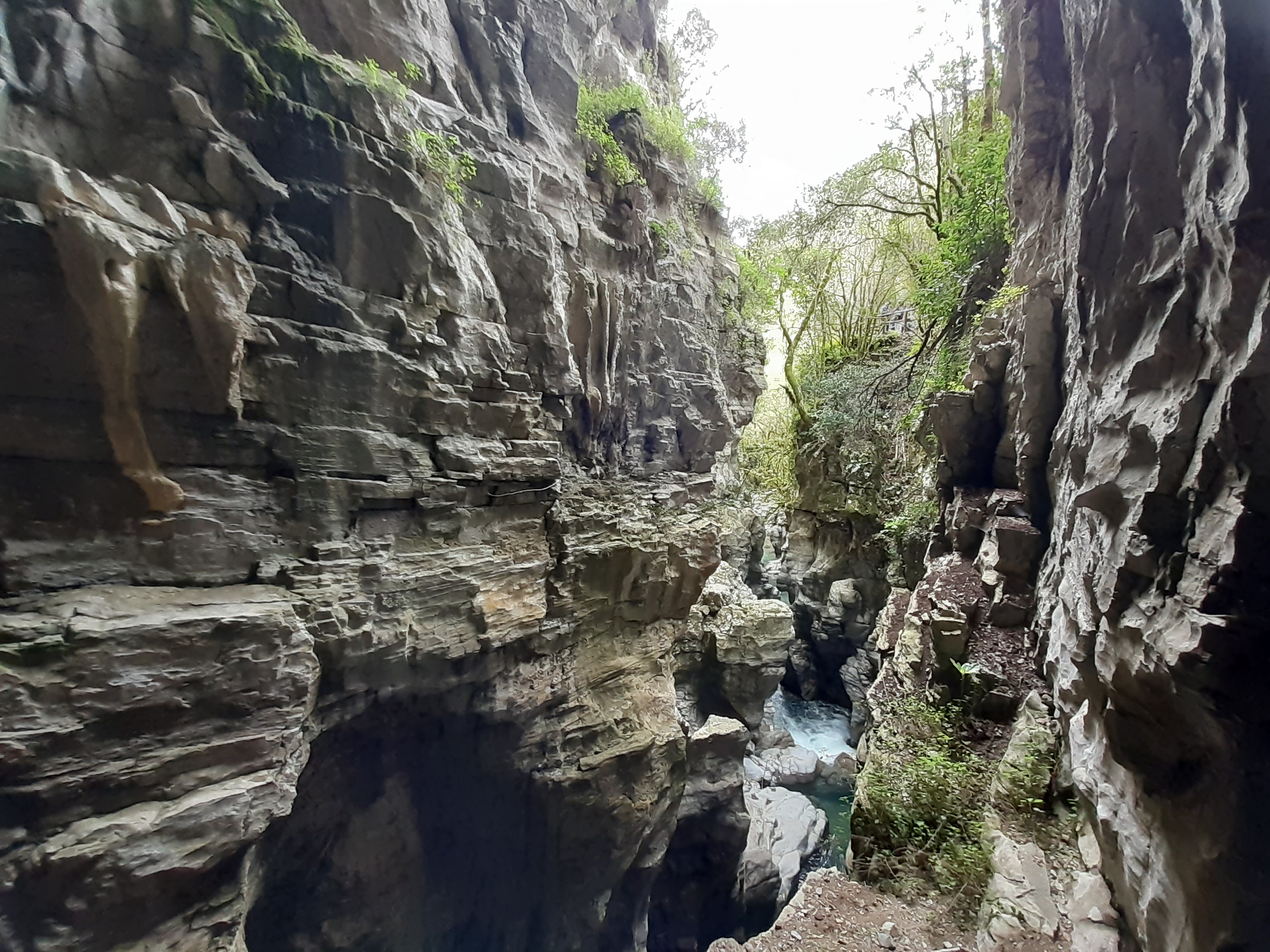 Un canyon recouvert d'une végétation luxuriante, où mousses, fougères, saules, aulnes poussent à côté des frênes, des charmes, des chênes blancs et de nombreuses autres espèces spontanées.